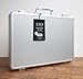 These cases are as functional as they are beautiful. The outer shell is made from durable brushed aluminum. The inside is lined in acid free black fabric. Both the lid and the bottom have elastic bands that snap closed to hold artwork firmly in place. The handle is aluminum and it is very comfortable to hold. The case closes with two clasps that can be locked (key included). Also included are two bands for holding the case opened; these bands button into the base and are removable. You can open the case and lay it down flat when the two corner bands are removed. The alternate photo shows a close up of the closure with lock and a close up of the feet that are on the bottom of the case (these feet allow you to stand the case up on a flat floor or table). Read more